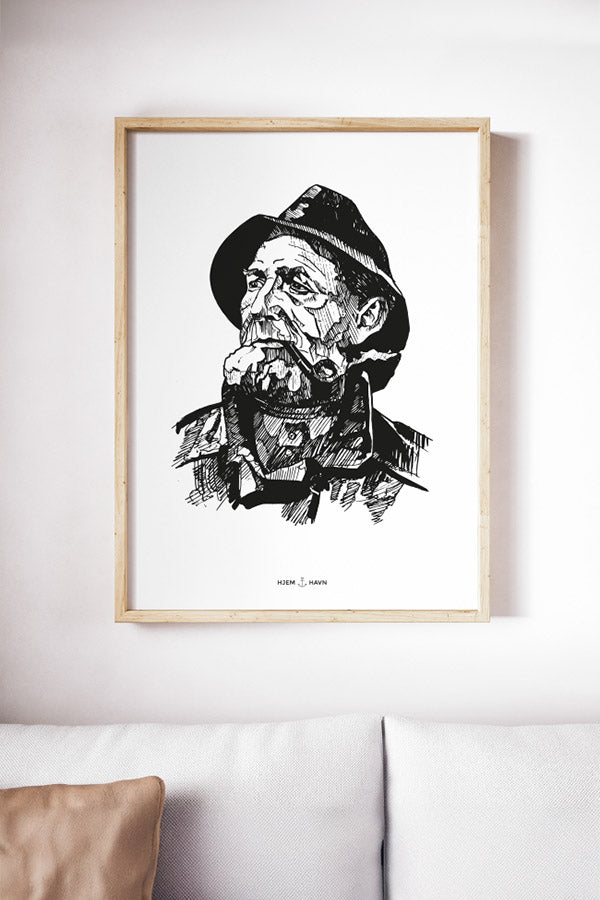 Dorus Rijkers war ein Held. Ein Retter, der zu seiner Zeit von König Willem III in den Niederlanden für die Rettung von mehr als 500 Menschen in Seenot geehrt wurde, und daher der Meeresretter war, der die meisten Menschen vor dem Ertrinken gerettet hatte. Heute, viele Jahre später, sind die niederländischen Rettungsstationen am Meer nach ihm benannt. Dass das Bild zu einer Ikone geworden ist liegt wahrscheinlich daran, dass ein deutscher Maler namens Harry Haarendel (1896-1991) in den 1920er Jahren ein Porträt von Dorus Rijkers von einer Fotografie aus dem späten 19. Jahrhundert malte. Seitdem wurden das Bild und das Gemälde unzählige Male kopiert und haben im Laufe der Jahre die Wand in vielen dänischen und ausländischen Häusern geprägt. Dorus Rijkers lebensrettende Karriere begann 1872, bevor er Mitglied von NZHRM (Noord- en Zuid-Hollandsche Redding Maatschappij) wurde, und als er als Kapitän seines eigenen Bootes diente.
