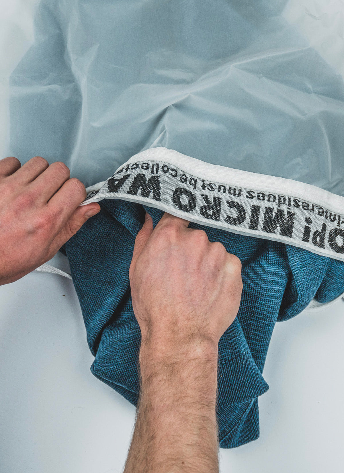 1. Læg syntetiske tekstiler i Guppyfriend. Overfyld ikke ikke posen.