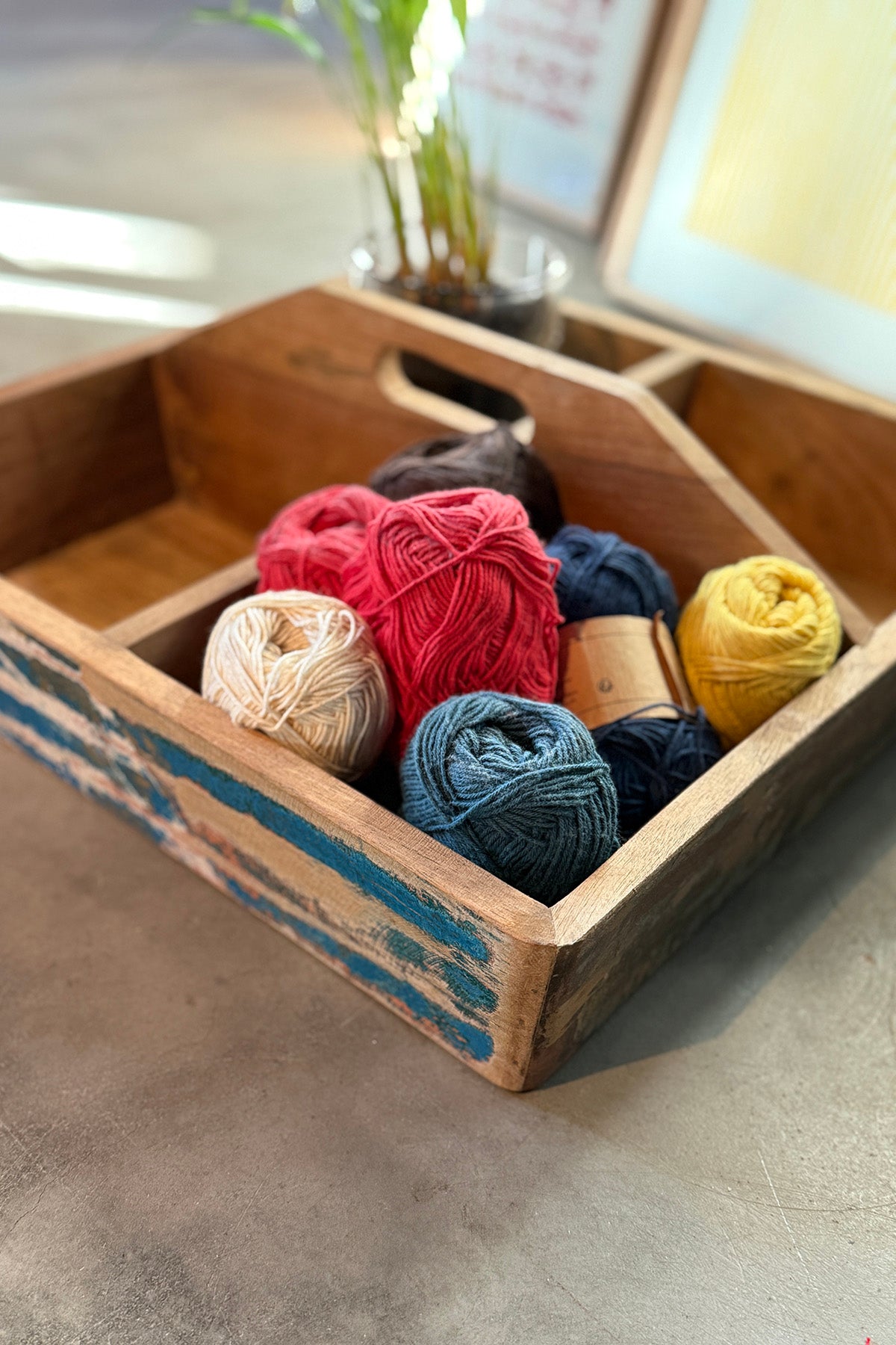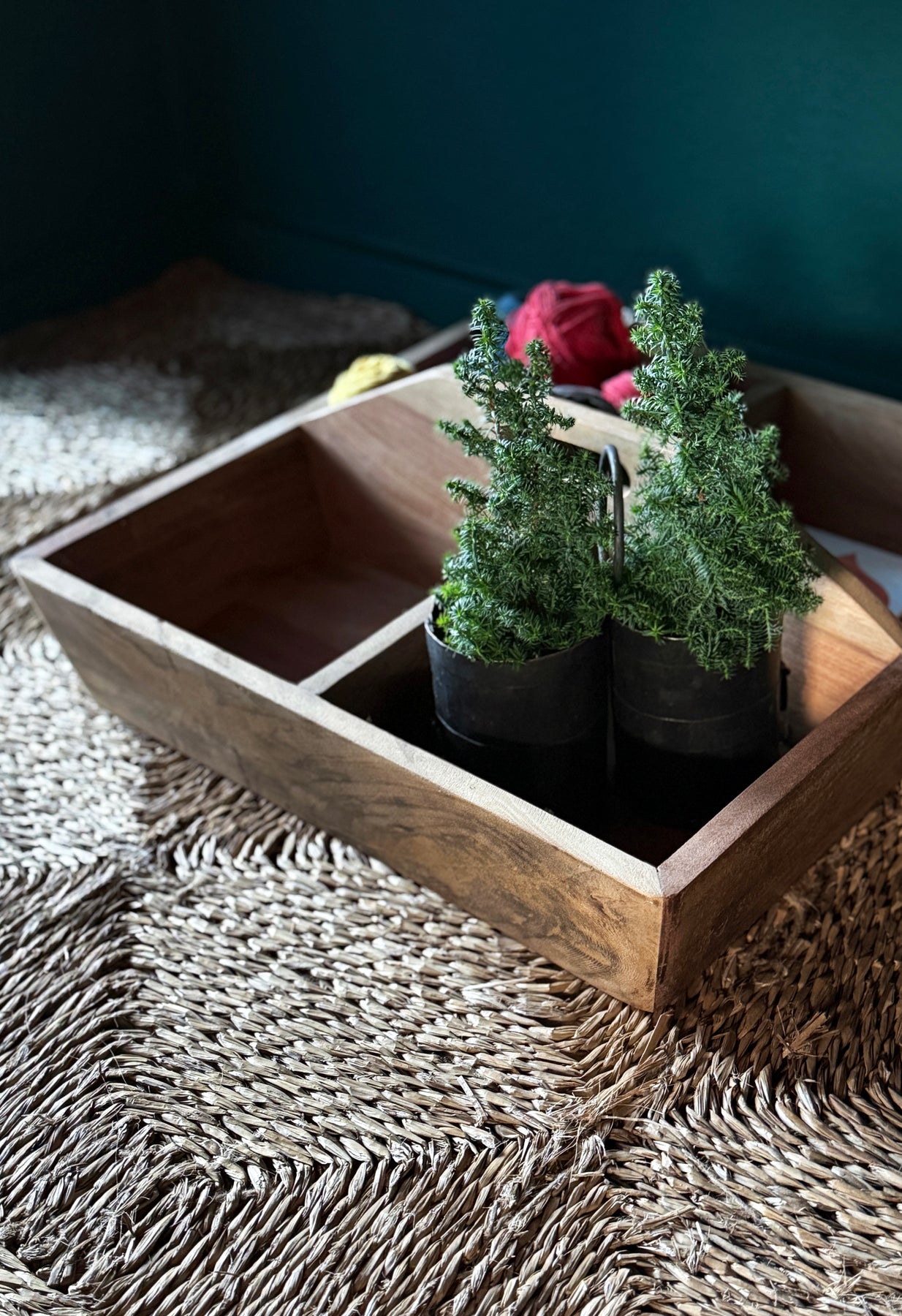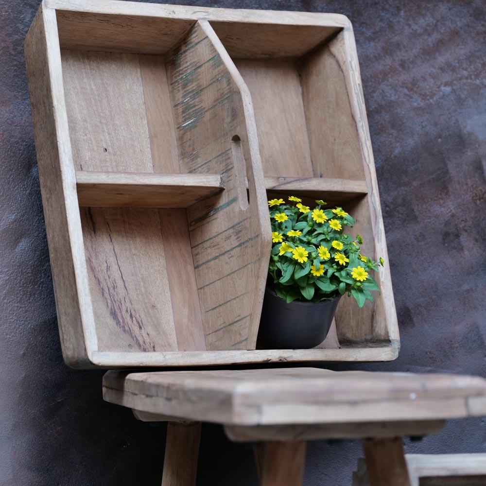Bakke lavet af genbrugstræ. Praktisk til at organisere og udstille forskellige ting. Hvad enten det er som serveringsbakke til snacks og drikkevarer, som opbevaring af krydderier og redskaber i køkkenet eller som et dekorativt element til lys og vaser i stuen - mulighederne er uendelige. Størrelse: 18x45x45 cm