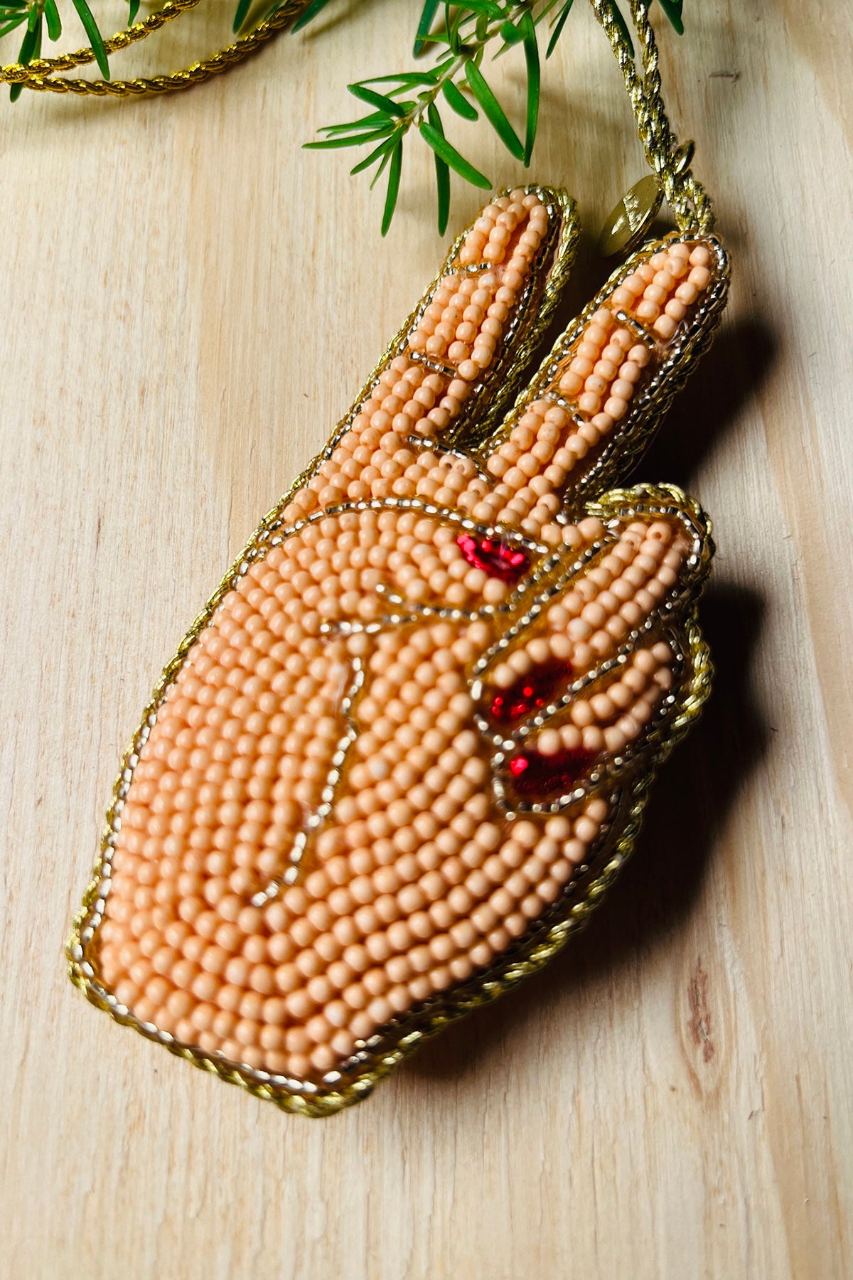 Hergestellt aus handgefärbten Glasperlen mit Metallschnur. Es ist auf beiden Seiten gleich bestickt.