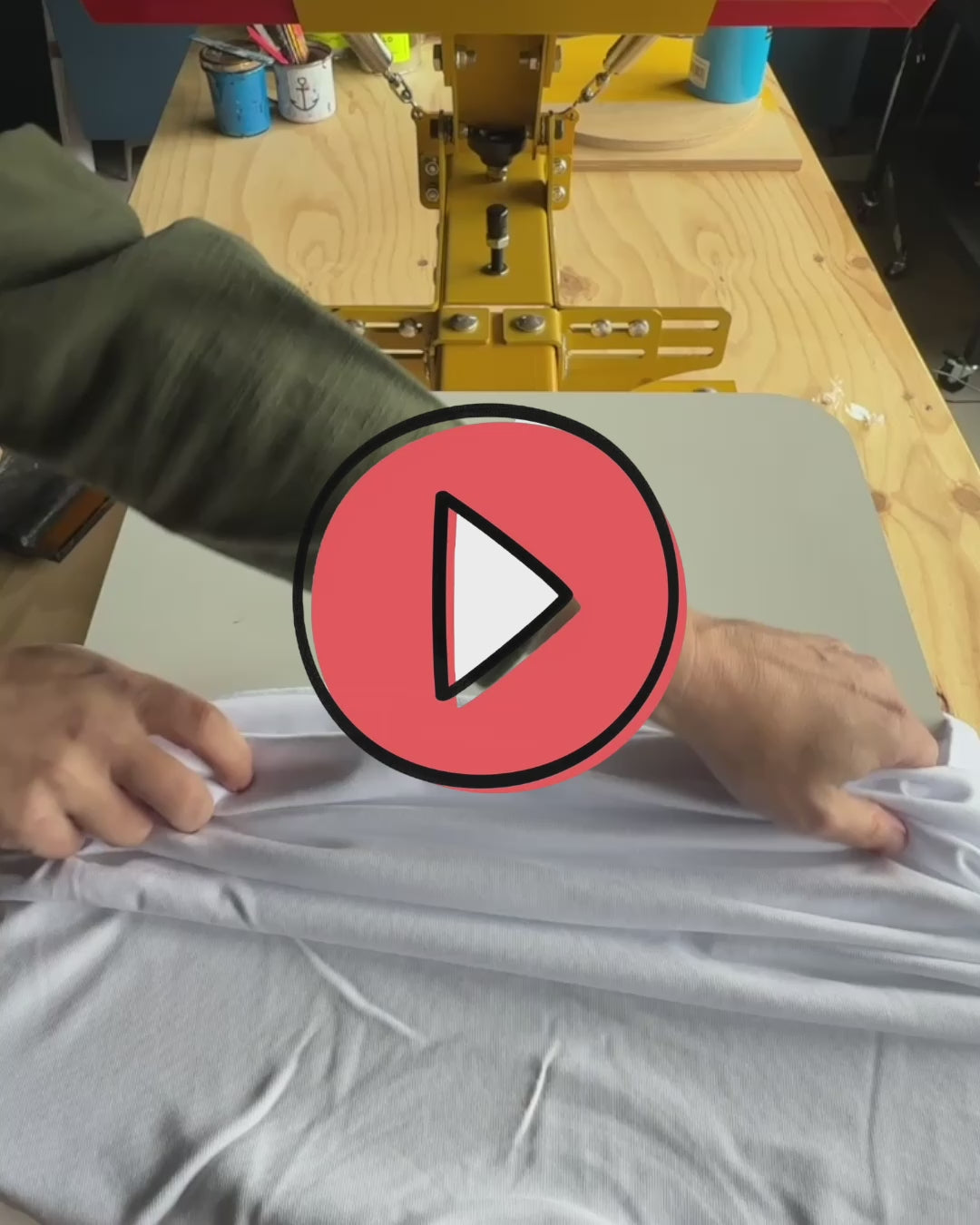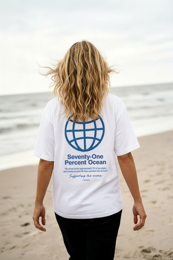 Denne shirt håndtrykker vi selv i vores værksted med serigrafi tryk og vandbaserede OEKO-Tex farver.