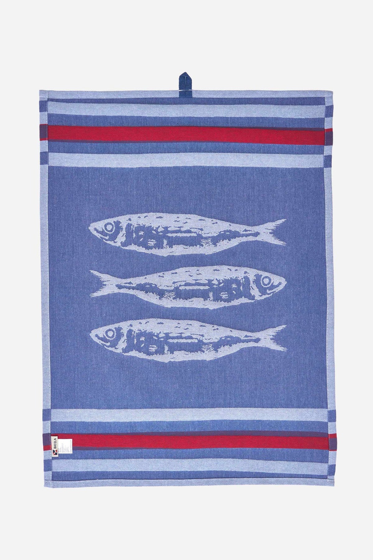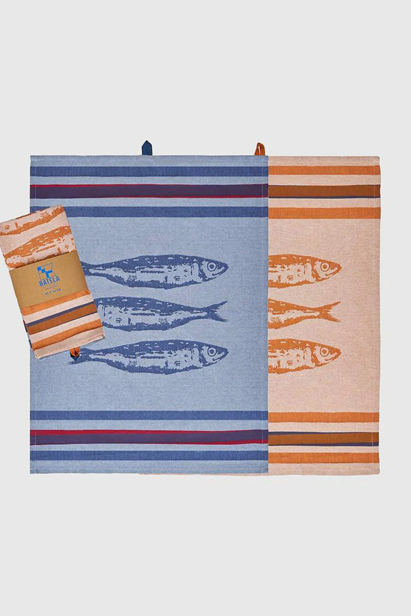 Sæt med to viskestykker i bomuldsjacquard med et design af fisk og striber.