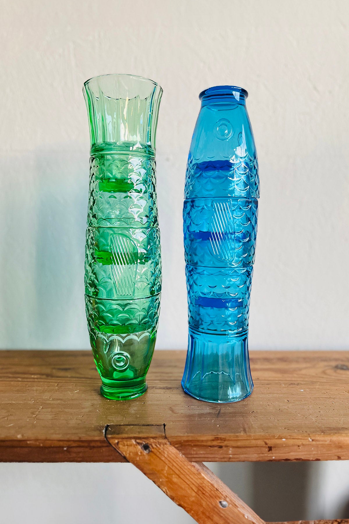 Dekoratives Set aus vier stapelbaren Trinkgläsern... Fisch.