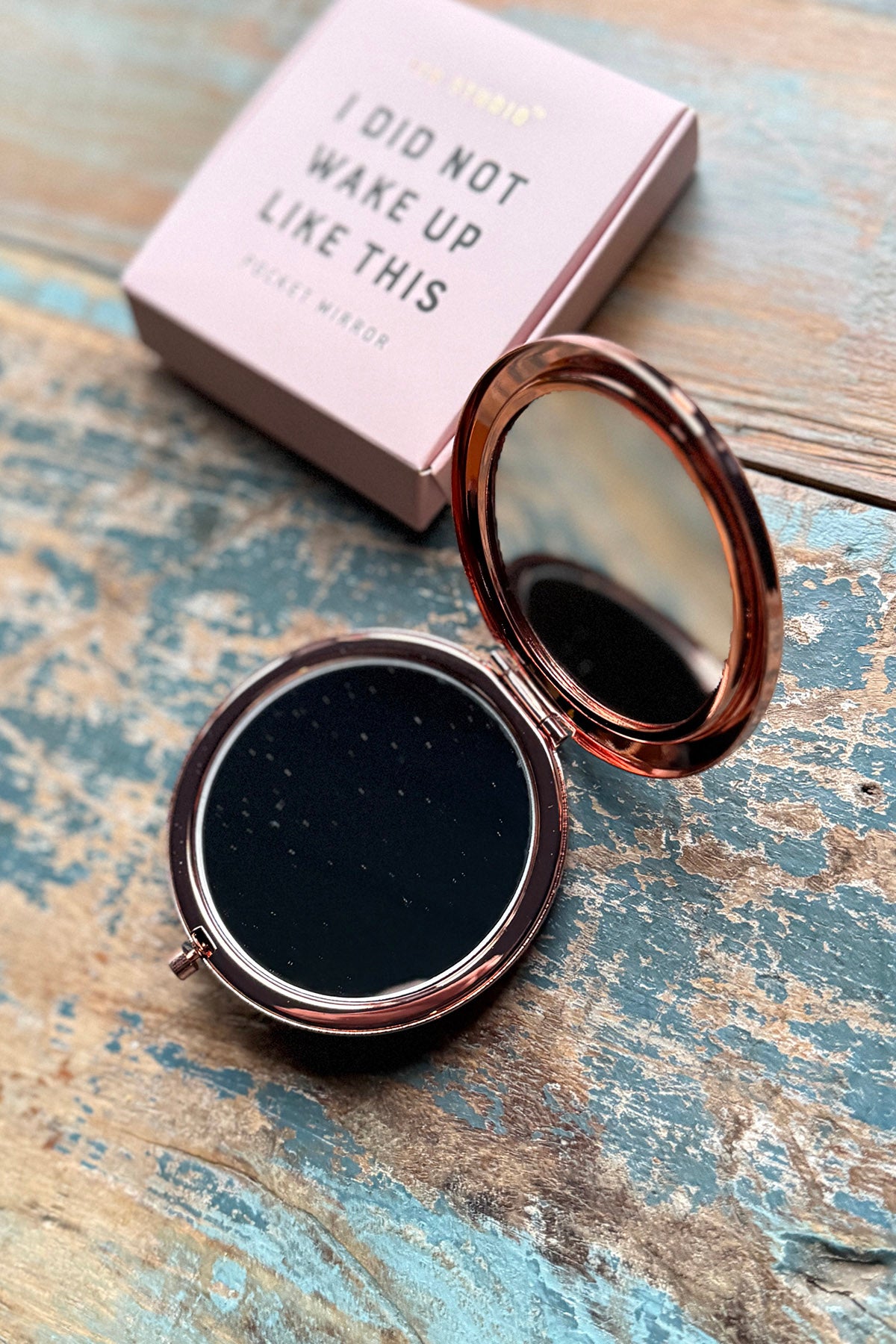 Ein bezaubernder Taschenspiegel mit zwei Spiegeln, einer davon mit Vergrößerungsfunktion. Er lässt sich per Knopfdruck leicht öffnen. Der Spiegel ist mit roségoldenen Details verziert und wird in einer eleganten Geschenkbox (85 × 85 × 22 mm) geliefert.